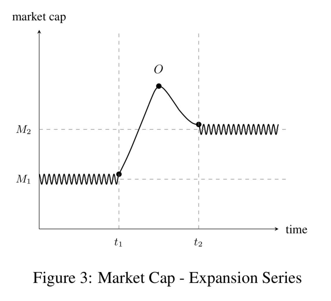 Ample’s elastic supply policy produces unique movement patterns over time across price, supply and market cap. Here’s an expansionary example from the Ampleforth Red Book: